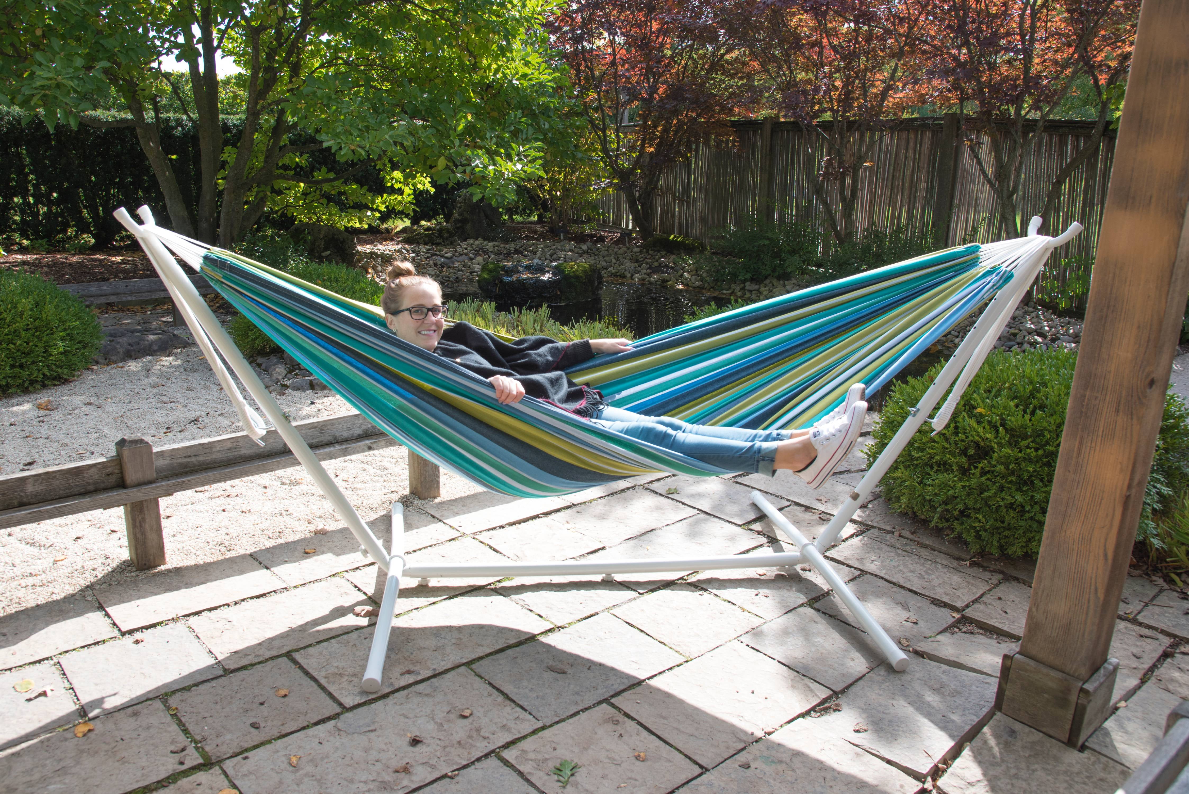 They are versatile, mobile and easy to assemble and disassemble while they offer the same, ultimate experience. May 29, 2016 at 2:02 pm. Create restful space with a hammock stand. Kingsize vela fsc™ certified scandinavian spruce stand (for extra large hammock chairs and loungers) listing price: The bases of hammock stands are usually around 4 feet wide.